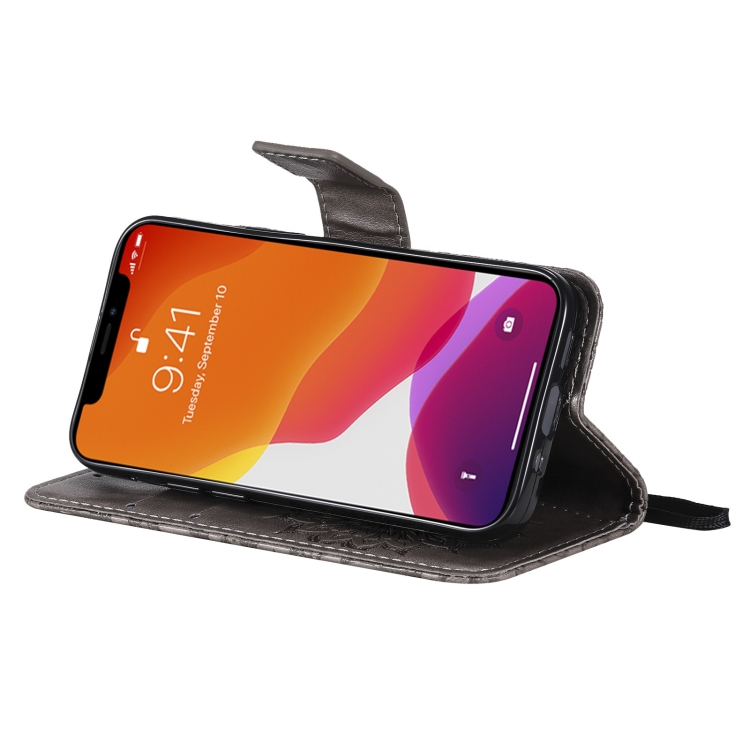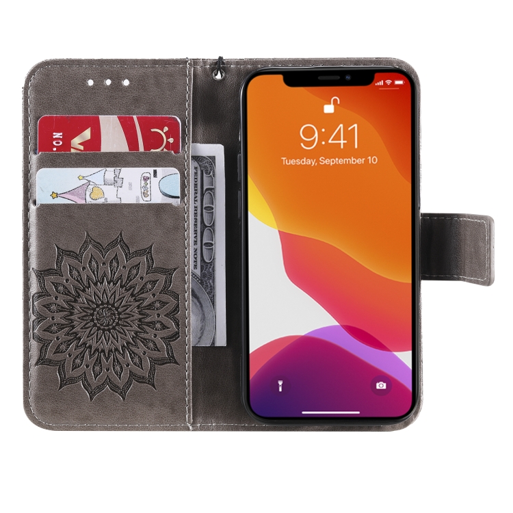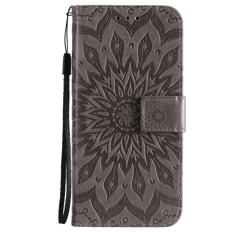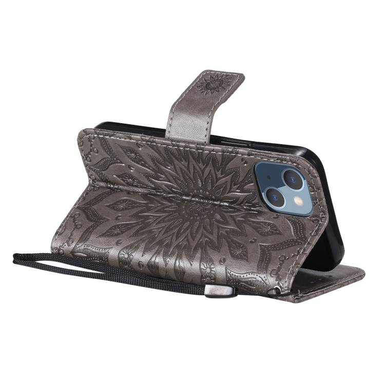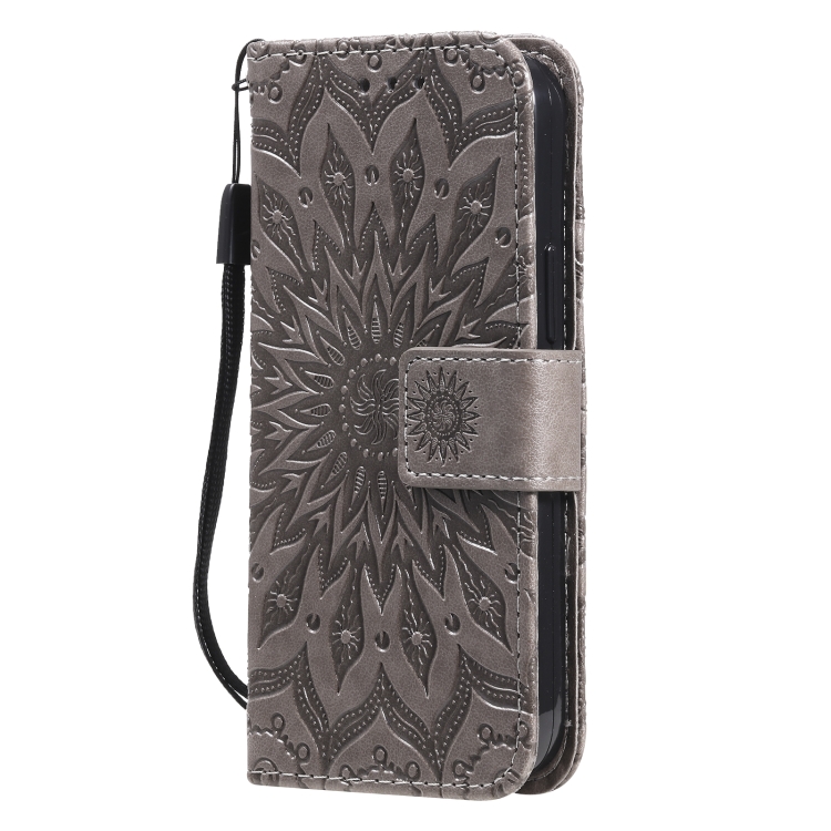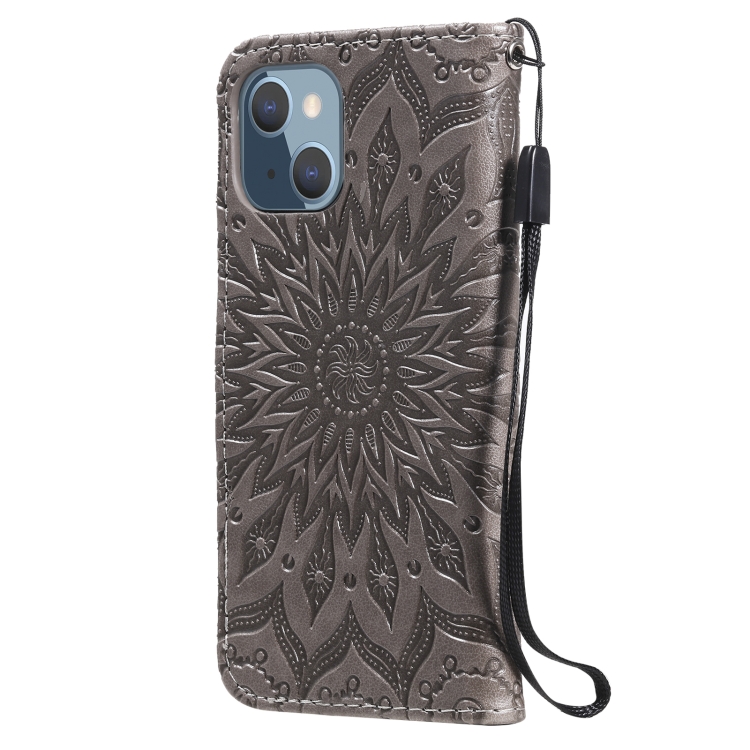 Funda para iPhone 13 Mini Cuero PU Patrón Girasol Flip Horizontal Ranuras Tarjetas Billetera Cordón (Gris)