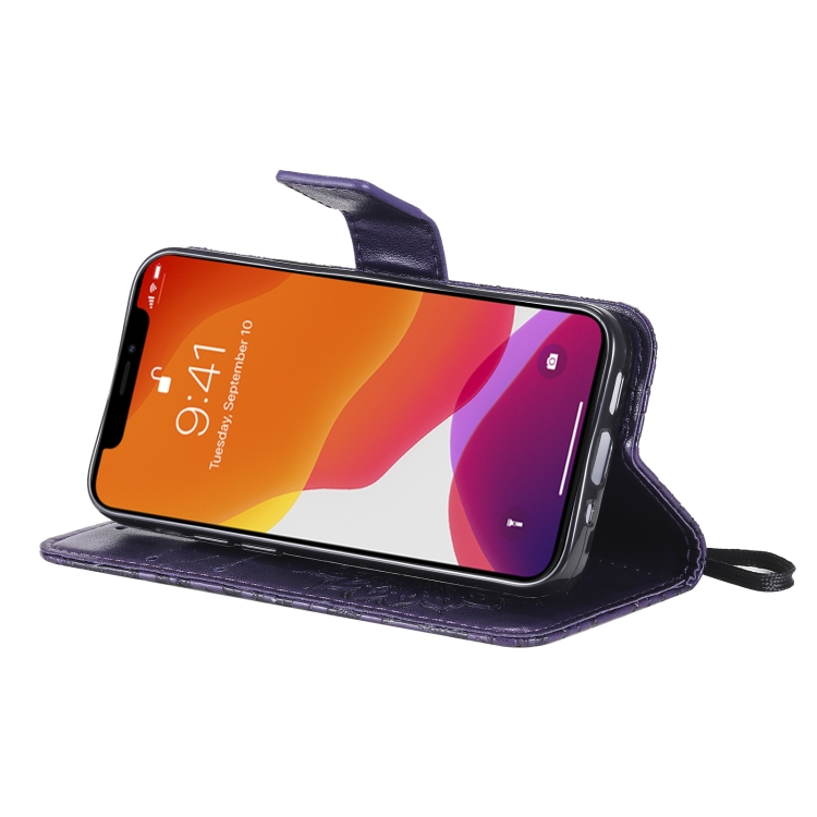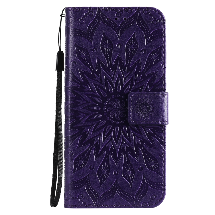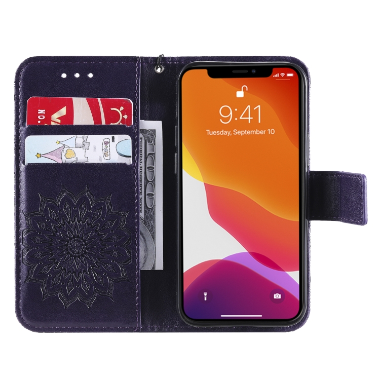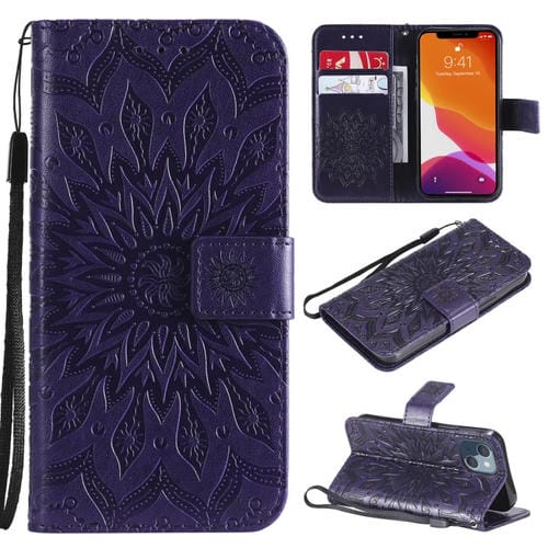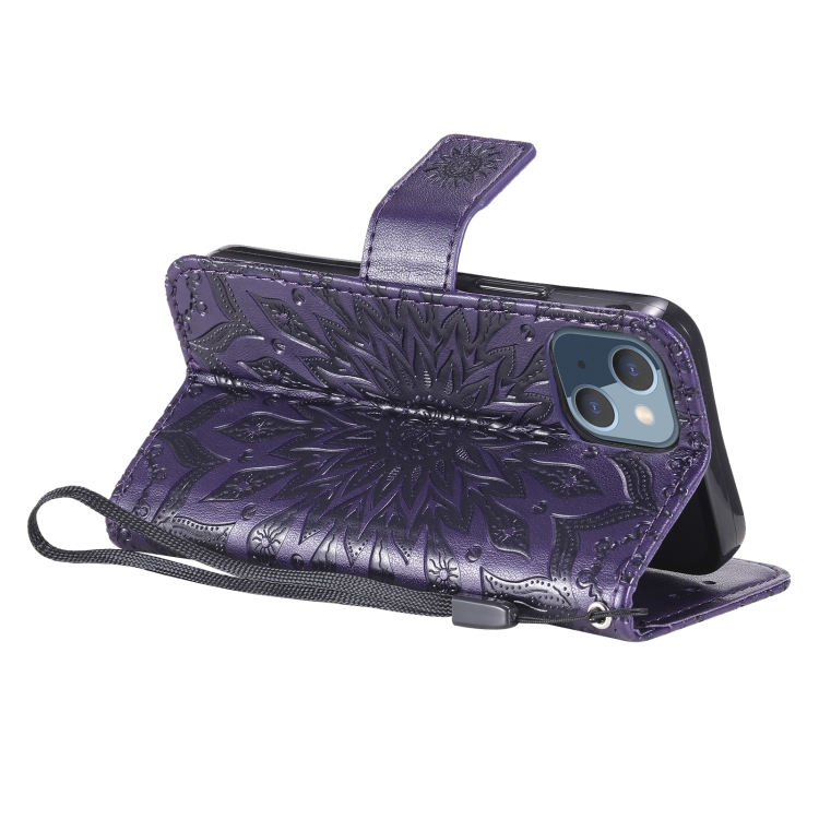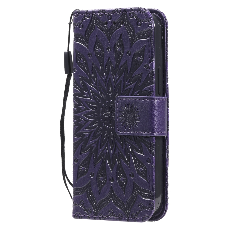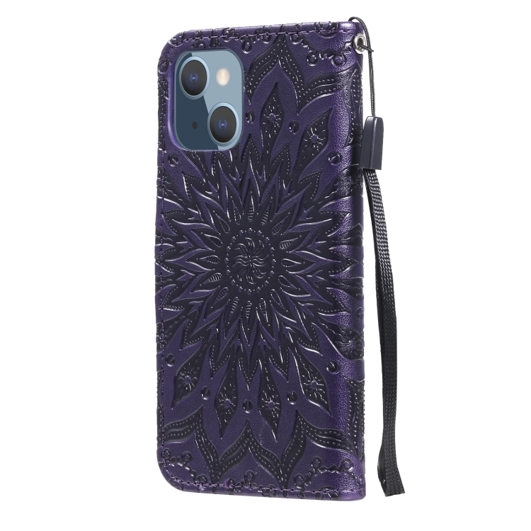 Funda para iPhone 13 Mini Cuero de PU Flip Horizontal Patrón Girasol Ranuras Tarjetas Billetera Cordón (Púrpura)