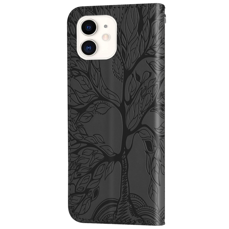 Funda de Cuero iPhone 13 Mini Life Of Tree con Tapa Horizontal Soporte Ranura Tarjeta Billetera Marco Fotos Cordón (Negro)