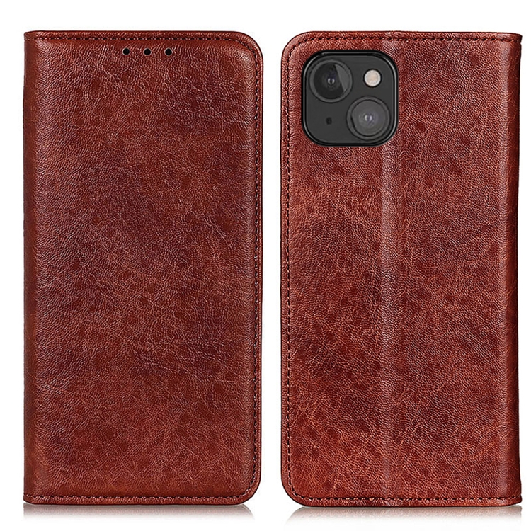 Funda para iPhone 13 Mini Crazy Horse Cuero con Tapa Horizontal Soporte y Ranuras para Tarjetas (Marrón)
