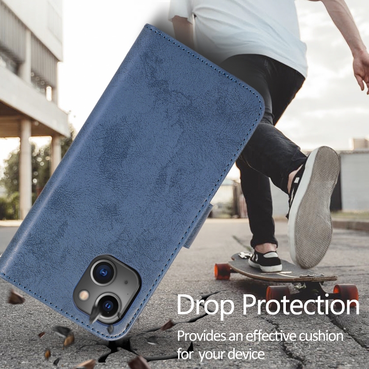 Funda para iPhone 13 Mini Retro 2 en 1 Cuero con Tapa Horizontal Desmontable y Ranuras para Tarjetas (Azul Oscuro)