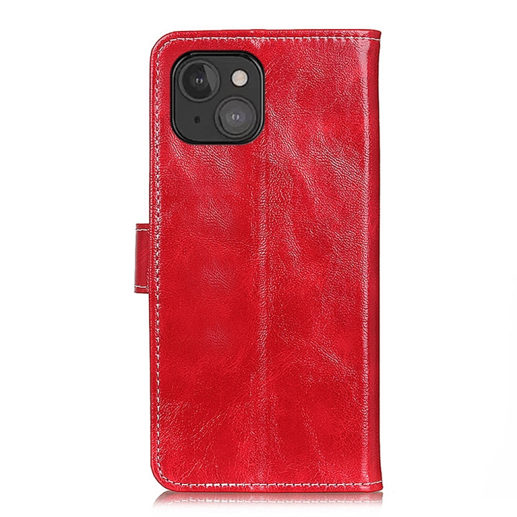 Funda para iPhone 13 Mini Retro Crazy Horse Texture de Cuero con Tapa Horizontal, Soporte, Ranuras para Tarjetas, Marco de Fotos y Billetera (Rojo)