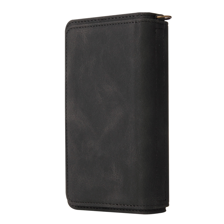 Funda para iPhone 13 Mini Skin Feel PU + TPU con Tapa Horizontal, Soporte, Ranura para 15 Tarjetas, Billetera y Bolsillo con Cremallera (Negro)