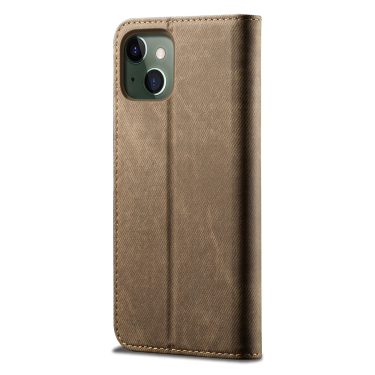 Funda para iPhone 13 Mini Cuero con Tapa Horizontal Soporte Ranuras Tarjetas Billetera (Caqui)
