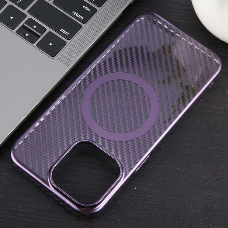 Caja de Teléfono para iPhone 13 Pro 6D PC Magsafe Transparente Fibra de Carbono (Púrpura Aurora)