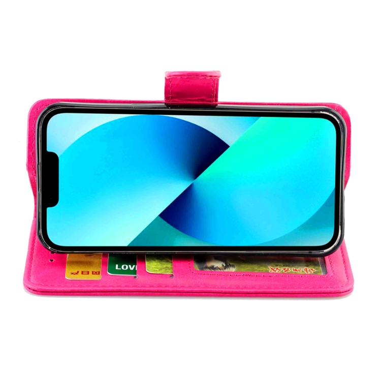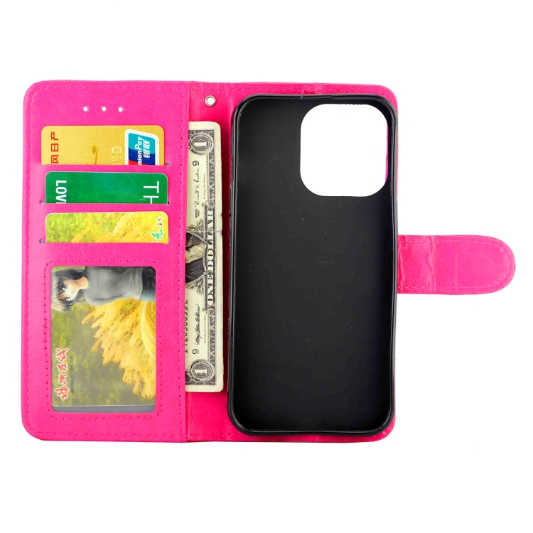 Funda Protectora iPhone 13 Pro Crazy Horse Texture Cuero Tapa Horizontal Soporte Ranuras Tarjetas Billetera Marco Fotos (Magenta)