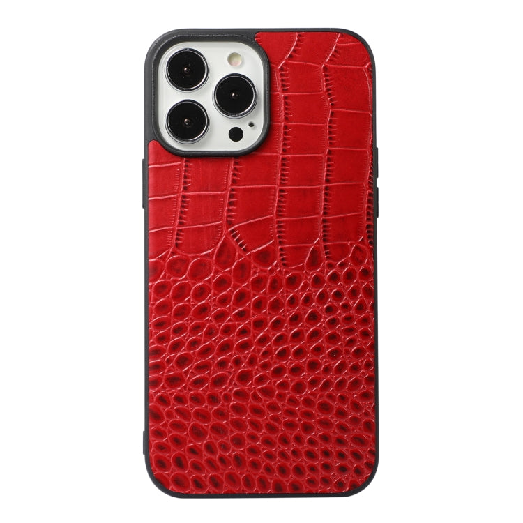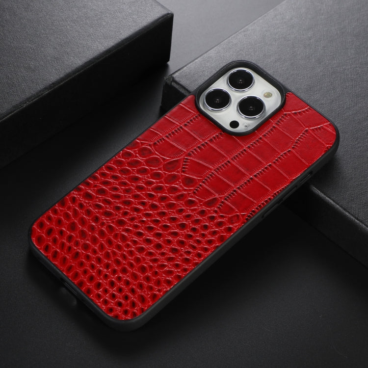 Estuche para iPhone 13 Pro Cuero Piel de Vaca con Capa Superior de Cocodrilo (Rojo)