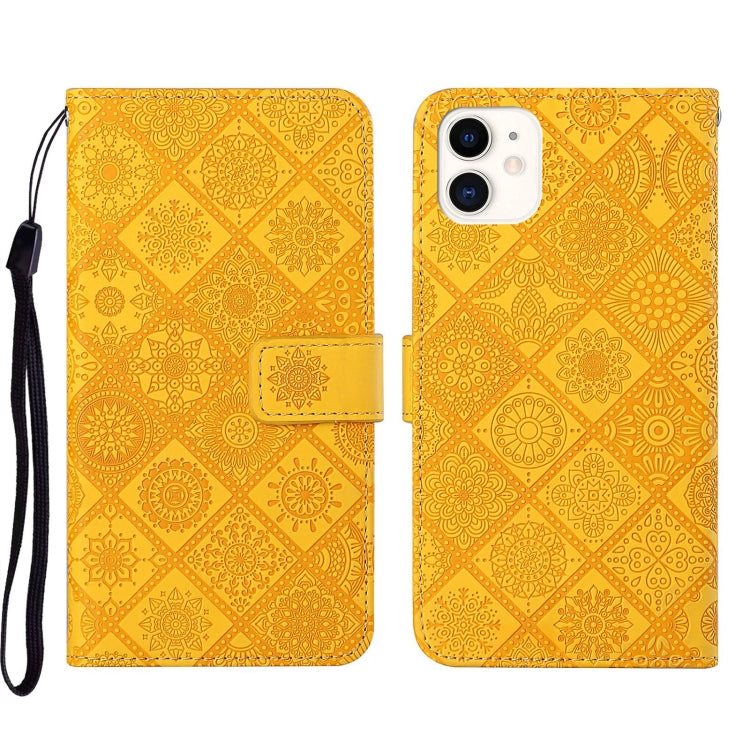 Estuche para teléfono iPhone 13 Pro Cuero Patrón en relieve Estilo étnico (Amarillo)