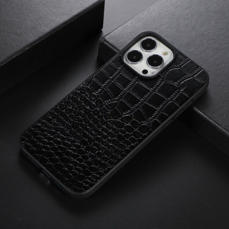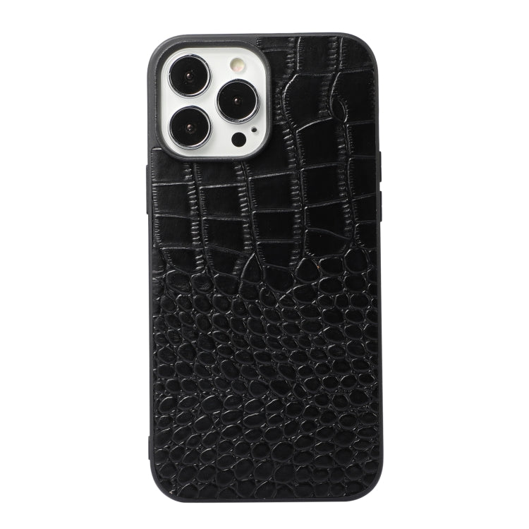 Funda para iPhone 13 Pro de Cuero Piel de Vaca con Capa Superior de Cocodrilo (Negro)