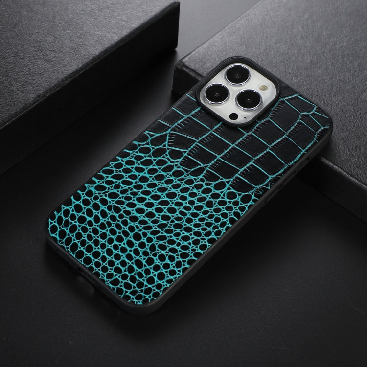 Funda para iPhone 13 Pro Piel de Vaca con Capa Superior de Cocodrilo (Azul Cian)