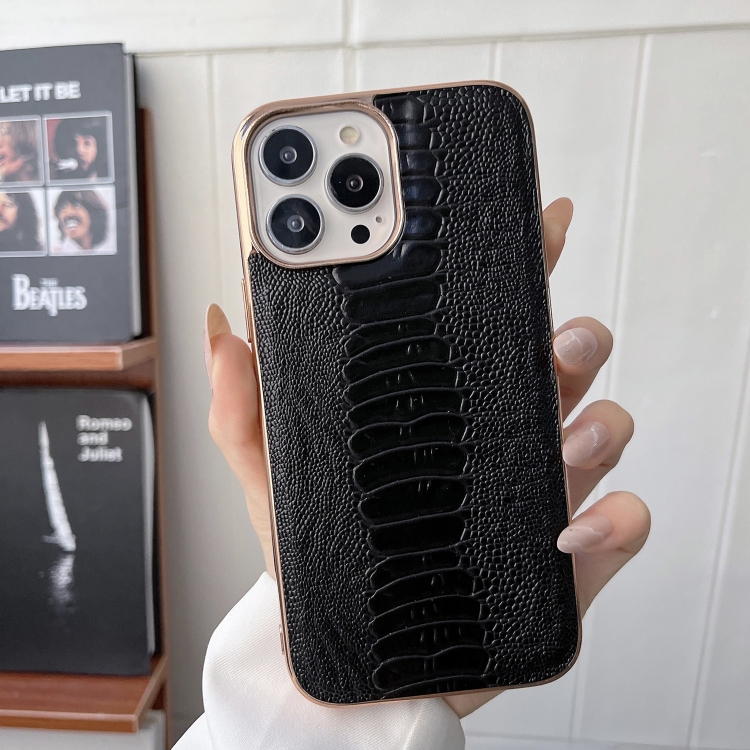 Funda de teléfono Pinshang para iPhone 13 Pro Galvanoplastia Nano Cuero Genuino (Negro)