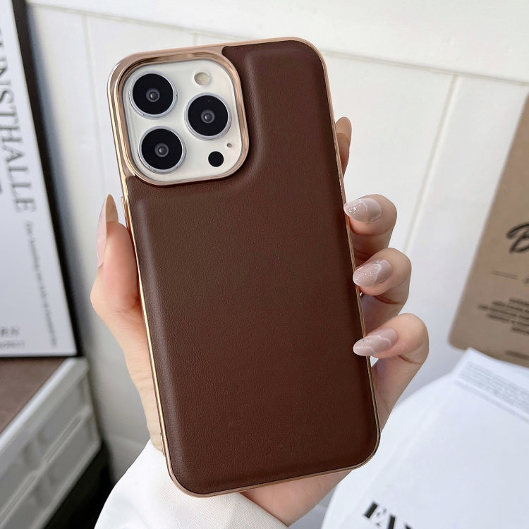 Funda de teléfono iPhone 13 Pro Xiaoya Galvanoplastia Nano Cuero Genuino (Café)