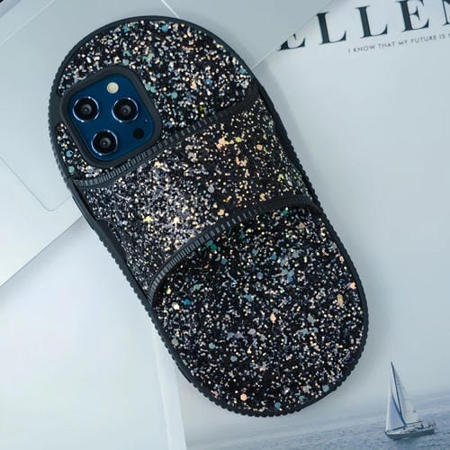 Funda para teléfono TPU iPhone 13 Pro Max Creative Glitter Slipper diseño a prueba de golpes (Negro)