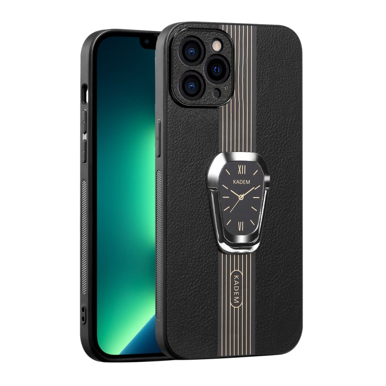 Estuche Magnético para Teléfono iPhone 13 Pro Max Parte Trasera de Cuero Litchi con Soporte (Negro)