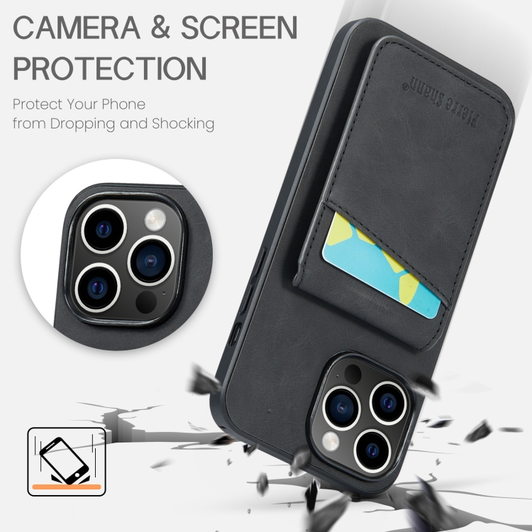 Funda para iPhone 13 Pro Max Fierre Shann Crazy Horse Card Holder Contraportada PU (Negro)