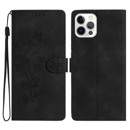 Funda de Cuero para iPhone 13 Pro Max Flower Embossing Pattern (Negro)