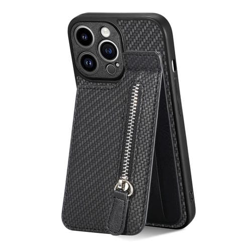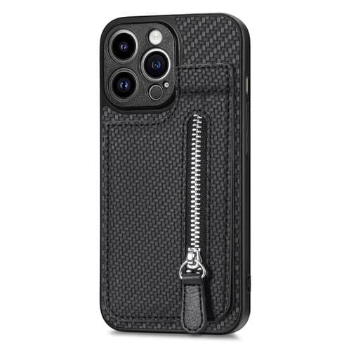 Funda de teléfono para iPhone 13 Pro Max con cremallera vertical de fibra de carbono (Negro)