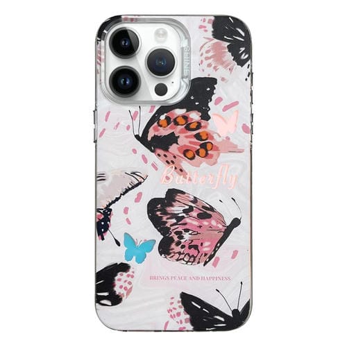 Funda para Teléfono iPhone 13 Pro Max TPU + PC con Patrón Colorido (Mariposas Rosadas)