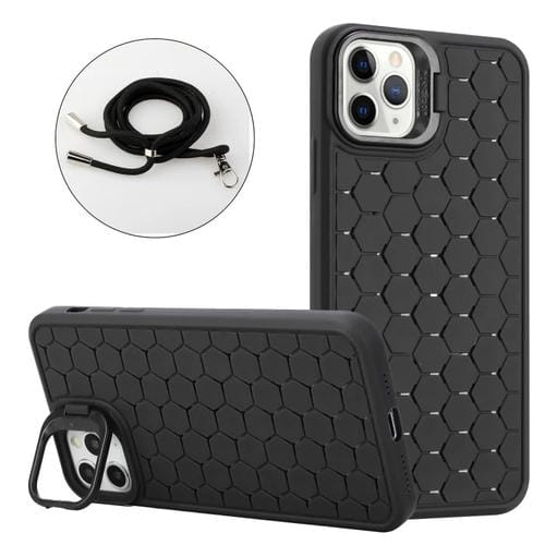 Funda para teléfono iPhone 13 Pro Max Honeycomb Radiating Lens Holder Magsafe con Cordón (Negro)