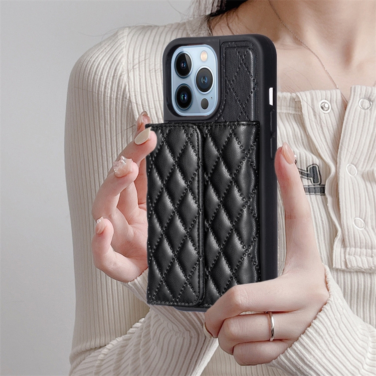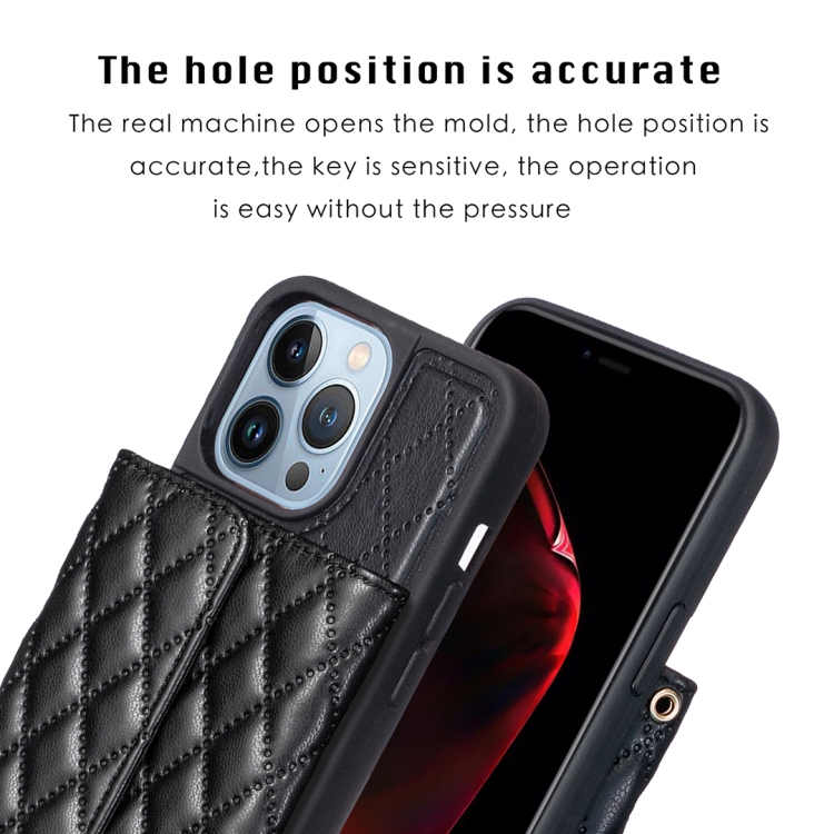 Funda para iPhone 13 Pro Max Horizontal Wallet Rhombic Leather Phone Case (Negro)