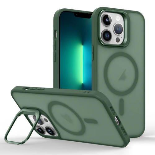Estuche para Teléfono iPhone 13 Pro Max Magsafe Skin Feel con Soporte para Lentes (Verde Oscuro)