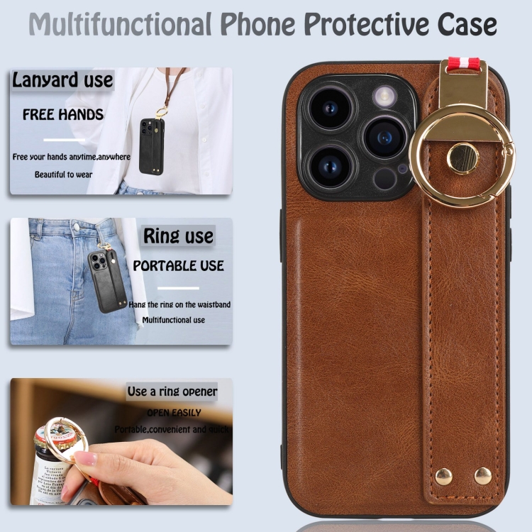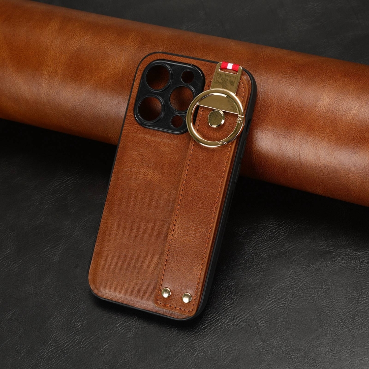 Funda Trasera de Cuero para iPhone 13 Pro Max Muñequera (Marrón)