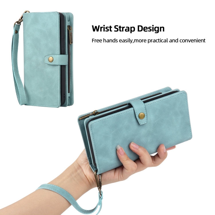 Funda para iPhone 13 Pro Max Zipper Wallet Desmontable Magsafe Cuero (Azul)