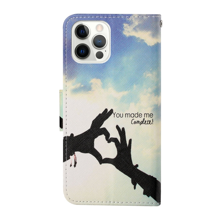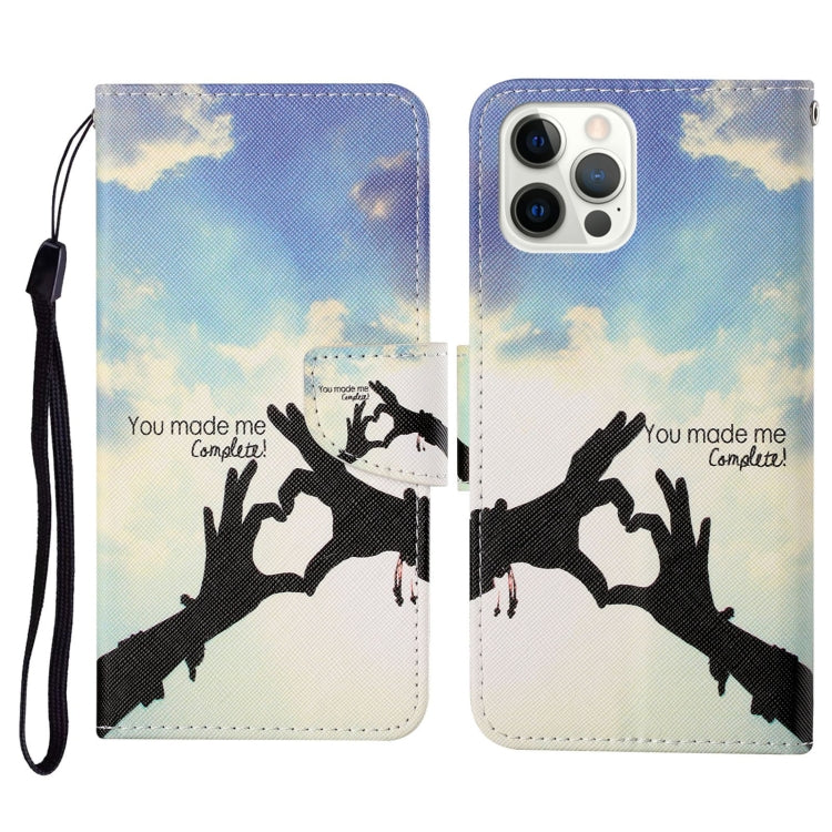 Funda de Teléfono iPhone 13 Pro Patrón de Dibujo Coloreado Cuero con Tapa Horizontal (Gesto de Amor)