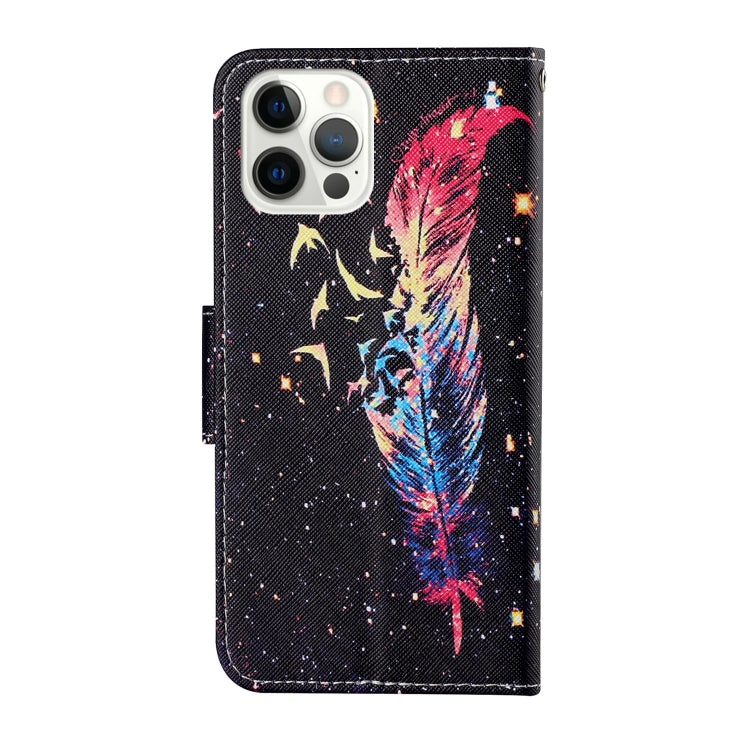 Funda de Teléfono iPhone 13 Pro Cuero con Tapa Horizontal Patrón de Dibujo Coloreado (Pluma)