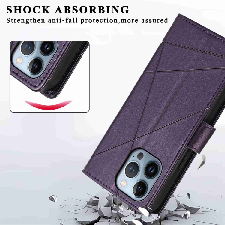 Funda para Teléfono iPhone 13 Pro PU con Línea en Relieve Textura de Cuero Genuino (Púrpura)