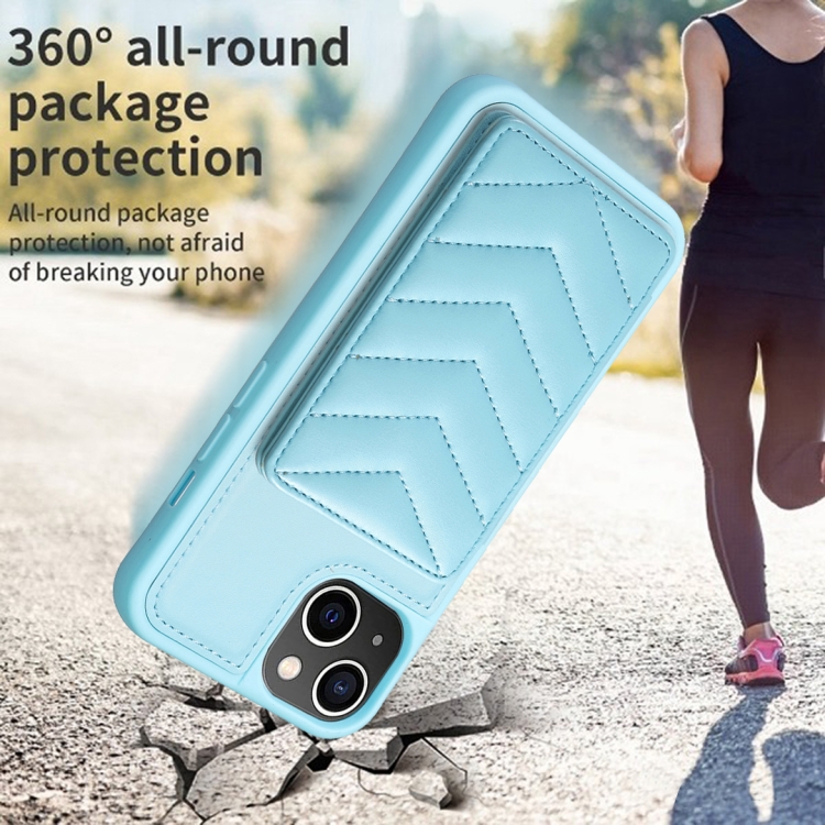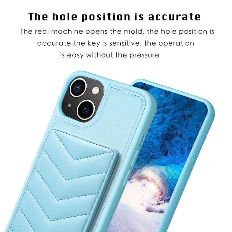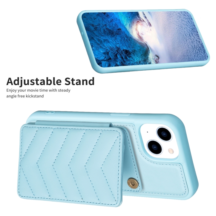Funda para iPhone 14/13 Bf26 Wave Pattern Card Bag Holder Phone Case (Azul)