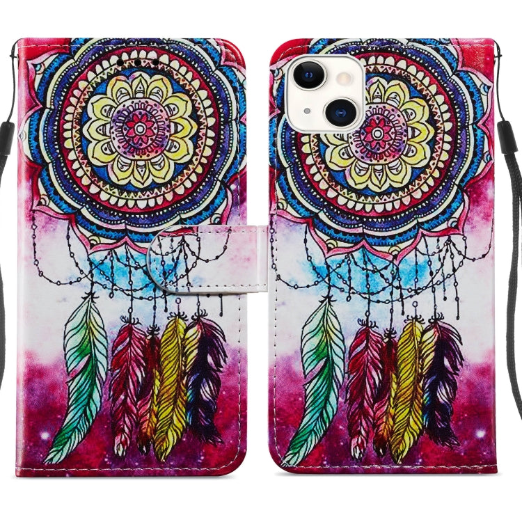Estuche de Teléfono iPhone 14 Cuero Patrón Pintado Atrapasueños