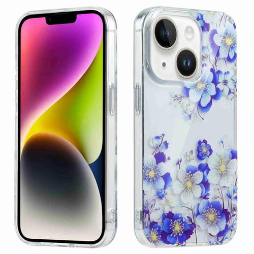 Estuche para Teléfono Symphony Galvanizado para iPhone 14 (Flor Blanca y Azul)