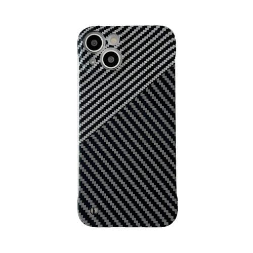 Funda de teléfono para iPhone 14 con textura de fibra de carbono para PC (Gris negro)