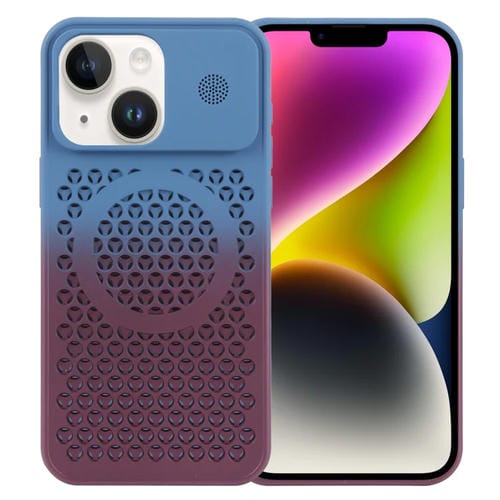 Funda Magnética para Teléfono iPhone 14 Aromaterapia Enfriamiento de Panal (Azul Rojo)