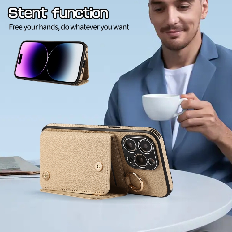 Funda para Teléfono iPhone 14 Contraportada de Cuero con Billetera y Anillo Cruzado (Marrón)