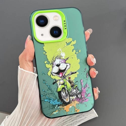 Funda para Teléfono iPhone 14 Imd Animal Graffiti TPU y PC Doble Cara (Perro de Motocicleta)