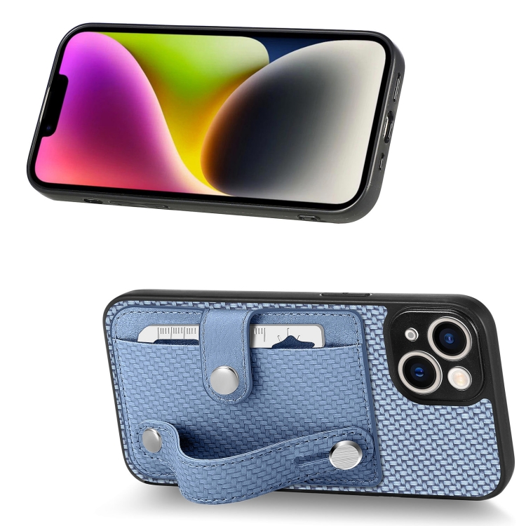 Funda para iPhone 14 Muñequera Kickstand Tarjeta Monedero Contraportada con Herramienta Cuchillo (Azul)