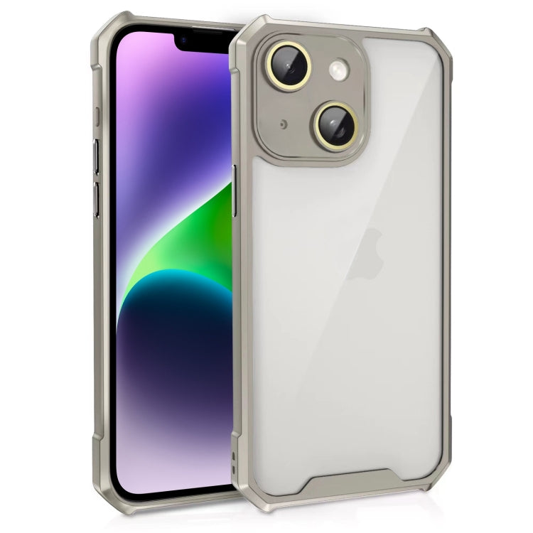 Estuche Acrílico para iPhone 14 Plus a Prueba de Golpes con Película de Vidrio para Lentes (Gris)