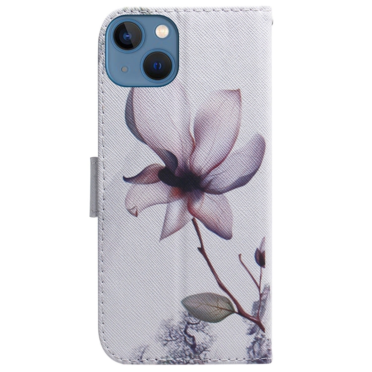Estuche de Teléfono iPhone 14 Plus Cuero con Tapa Dibujo Coloreado (Magnolia)