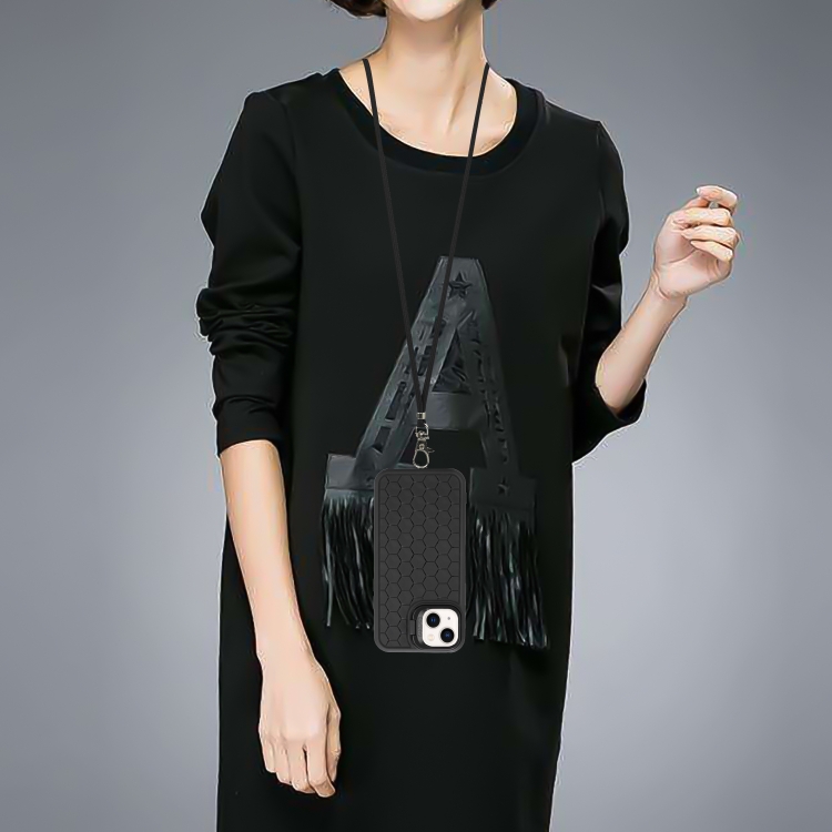 Estuche para teléfono Magsafe iPhone 14 Plus con soporte para Lente radiante en forma de panal con cordón (Negro)