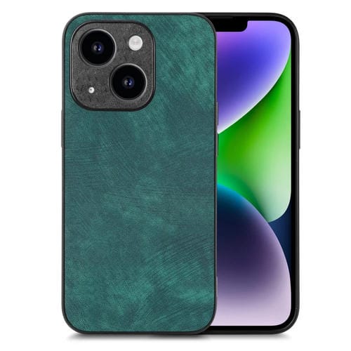 Funda de teléfono para iPhone 14 Plus con contraportada de PC de cuero vintage (Verde)