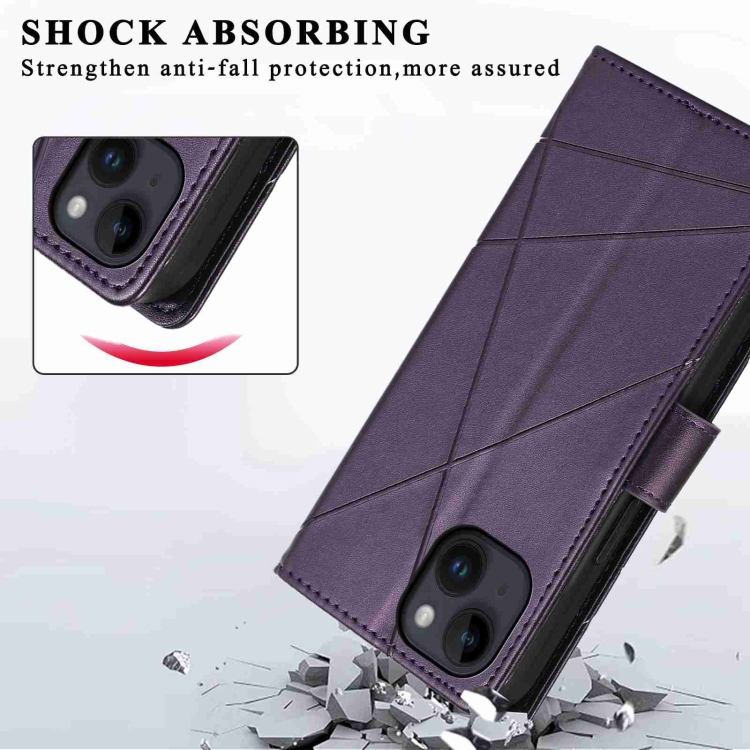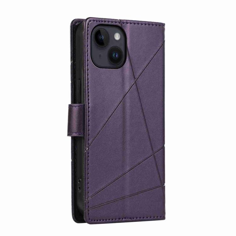 Funda para Teléfono iPhone 14 Plus Línea en Relieve Textura Cuero Genuino Pu (Púrpura)