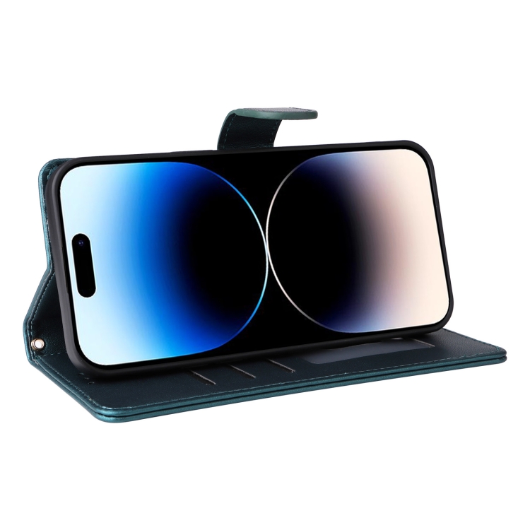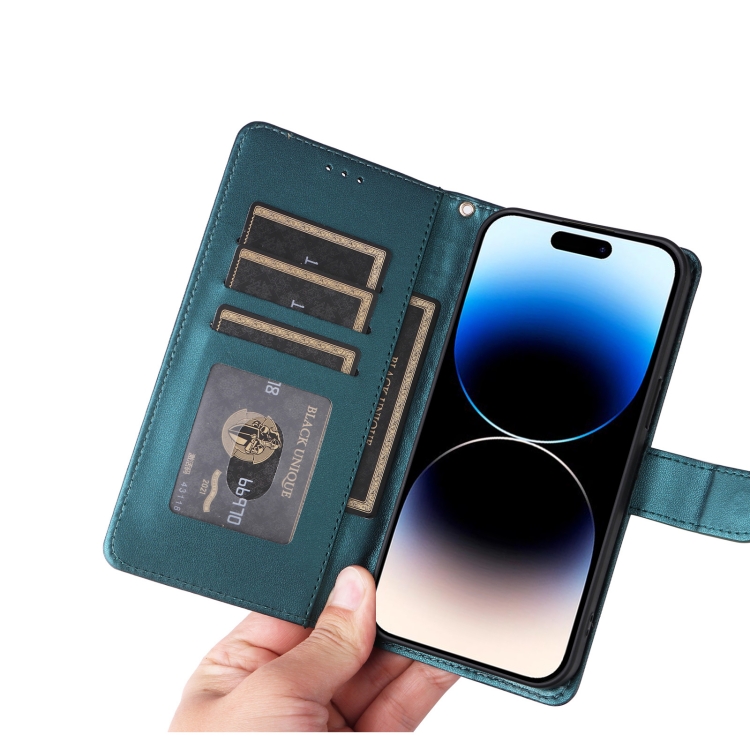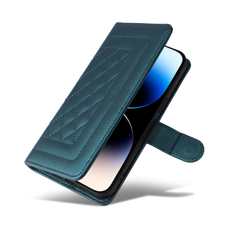Funda para iPhone 14 Pro Diamond Lattice de Cuero con Tapa (Verde)