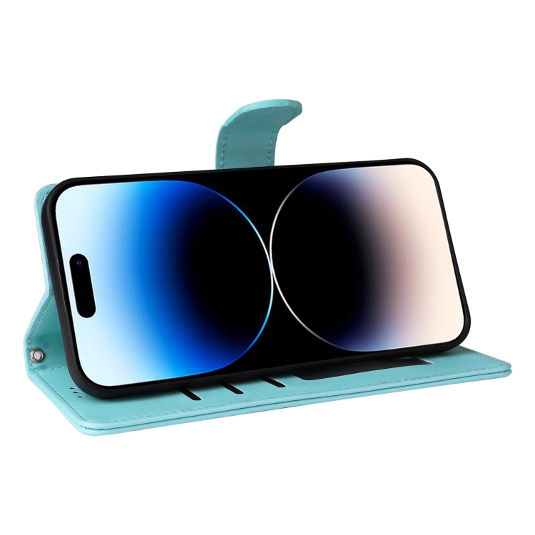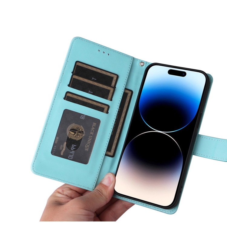 Funda de teléfono para iPhone 14 Pro con tapa de cuero Diamond Lattice (Verde Menta)