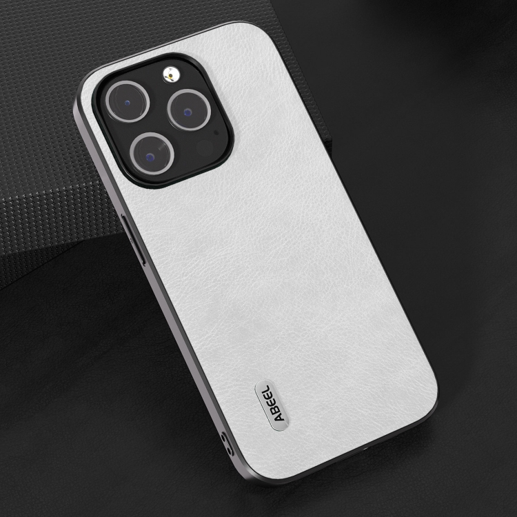 Funda para iPhone 14 Pro Max Abeel Dual Color Lichi Texture PU Phone Case (Blanco)