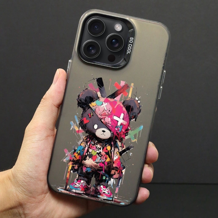 Funda para iPhone 14 Pro Max Color Ink Frosted PC y Estuche TPU Oso Negro