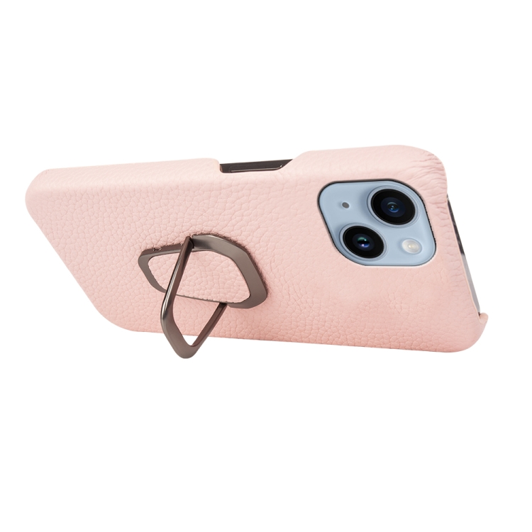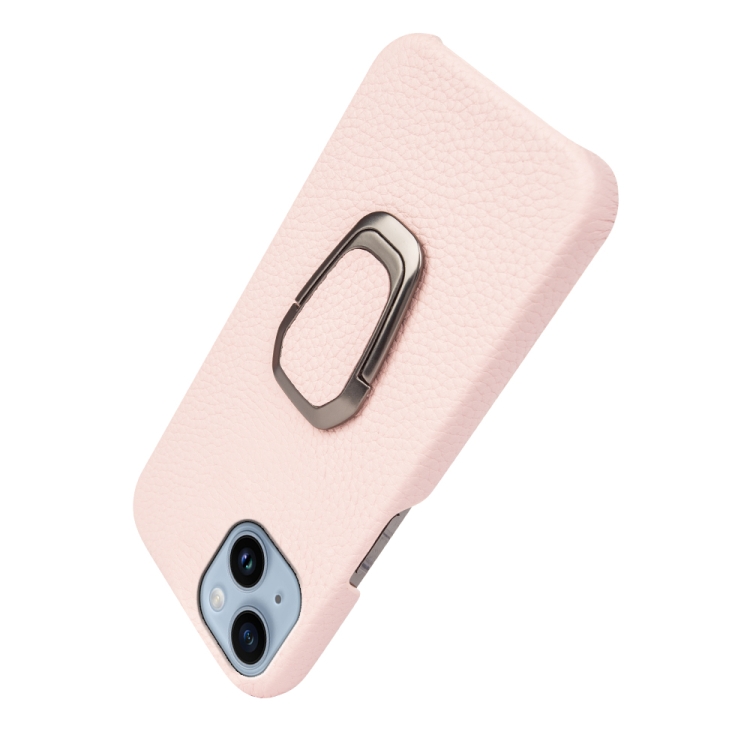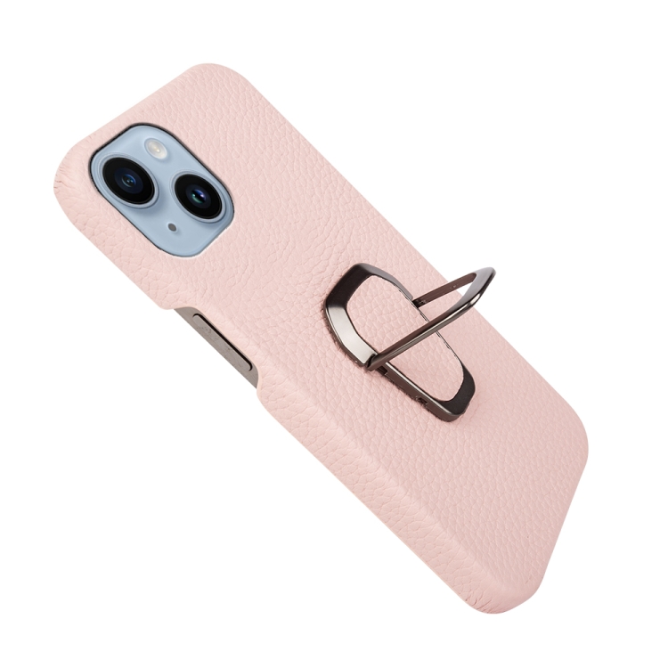 Funda para teléfono iPhone 14 Ring Holder Litchi Texture Cuero Genuino (Rosa)