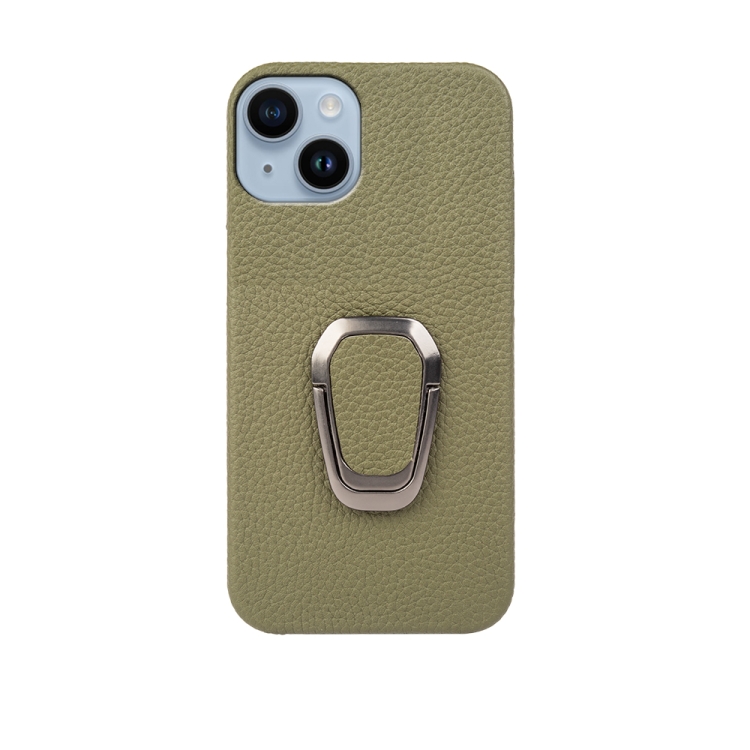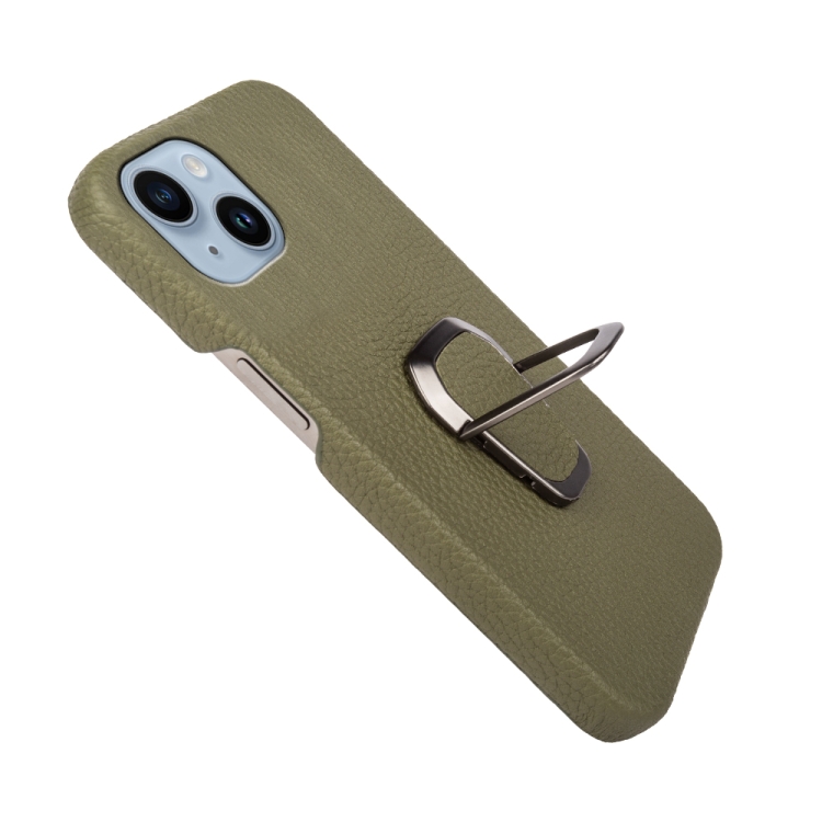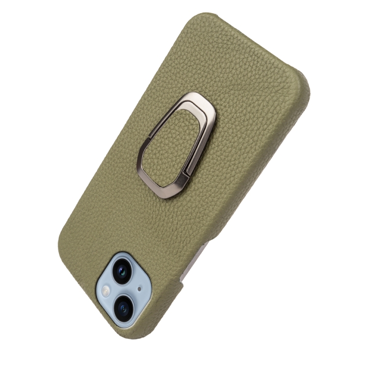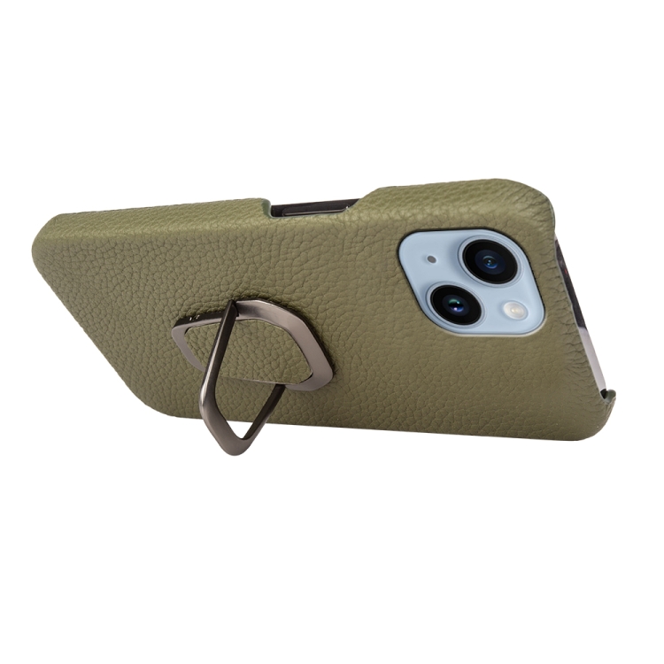 Funda para iPhone 14 Ring Holder Cuero Genuino Litchi Texture (Verde)