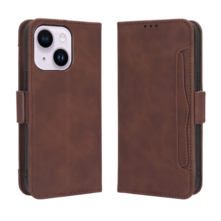 Funda para iPhone 14 Skin Feel Becerro Textura Ranuras para Tarjetas Cuero (Marrón)